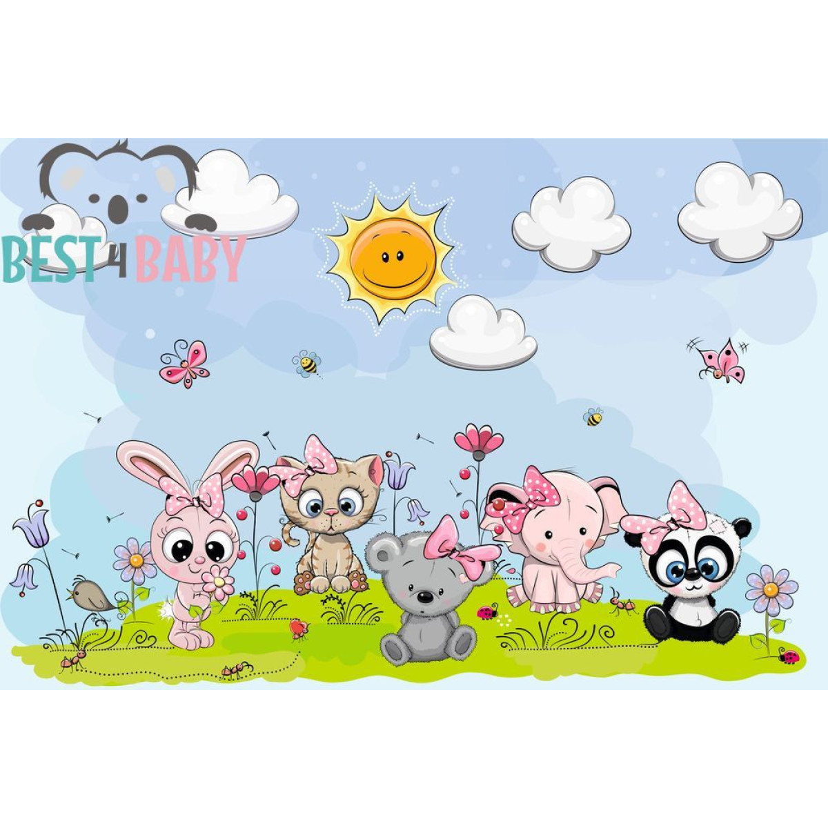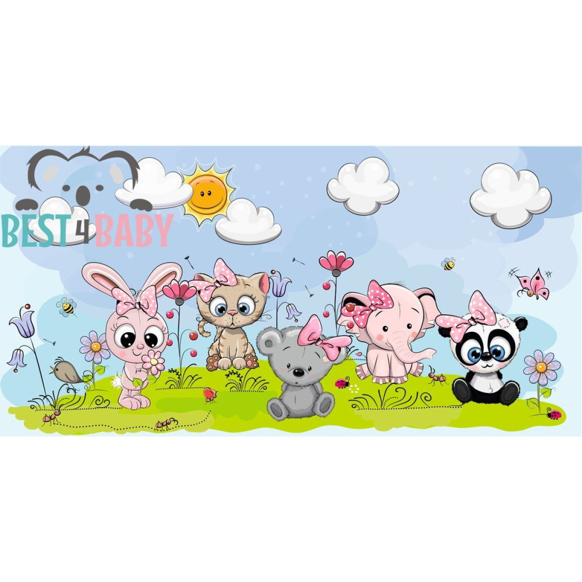 Aranyos állatos poszter gyerekszobába, állatok: nyuszi, koala, panda, elefánt, cicás poszter