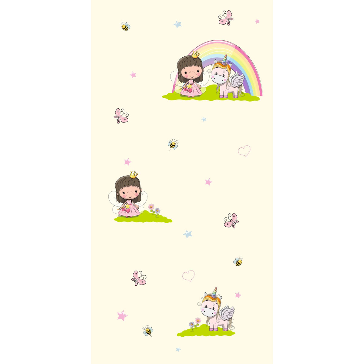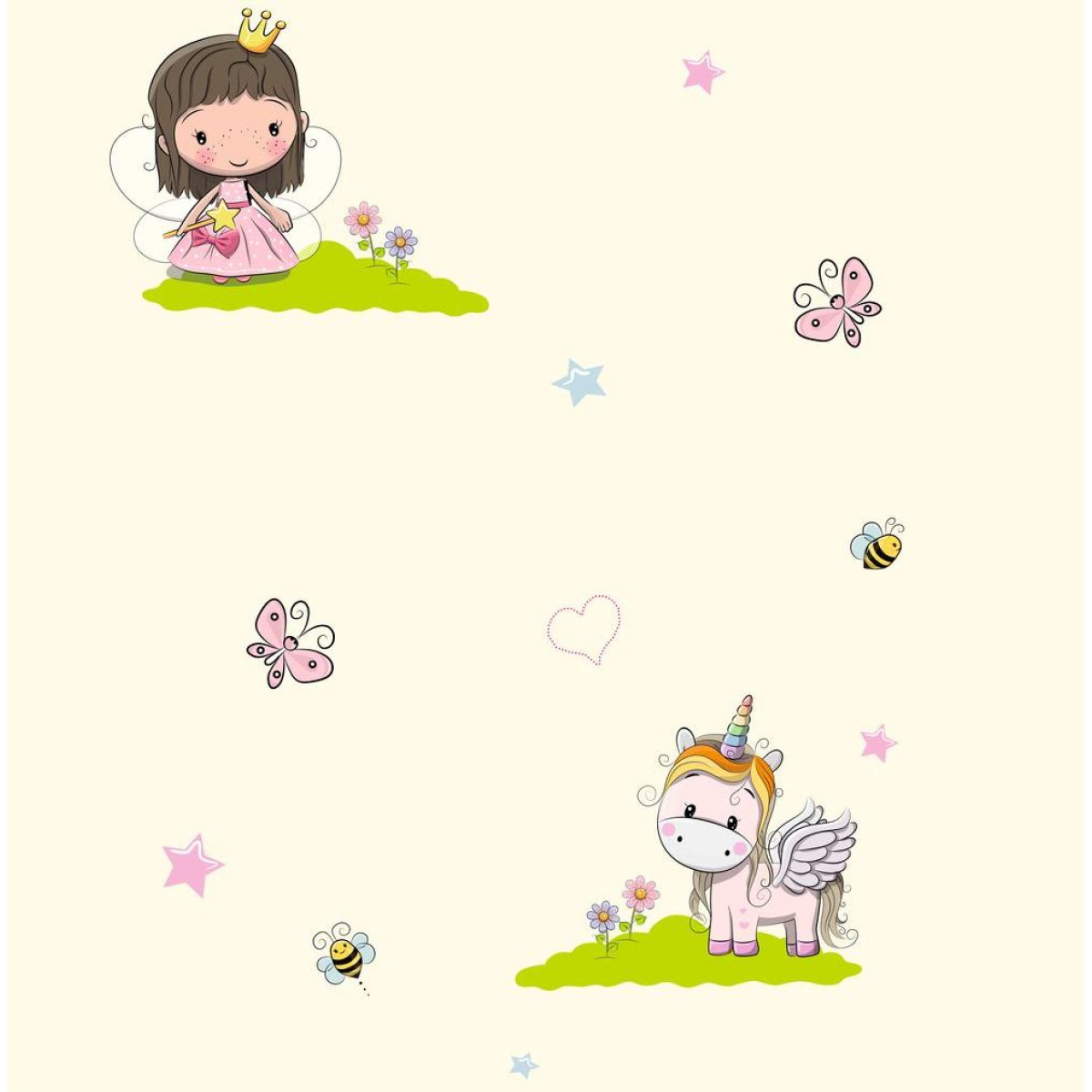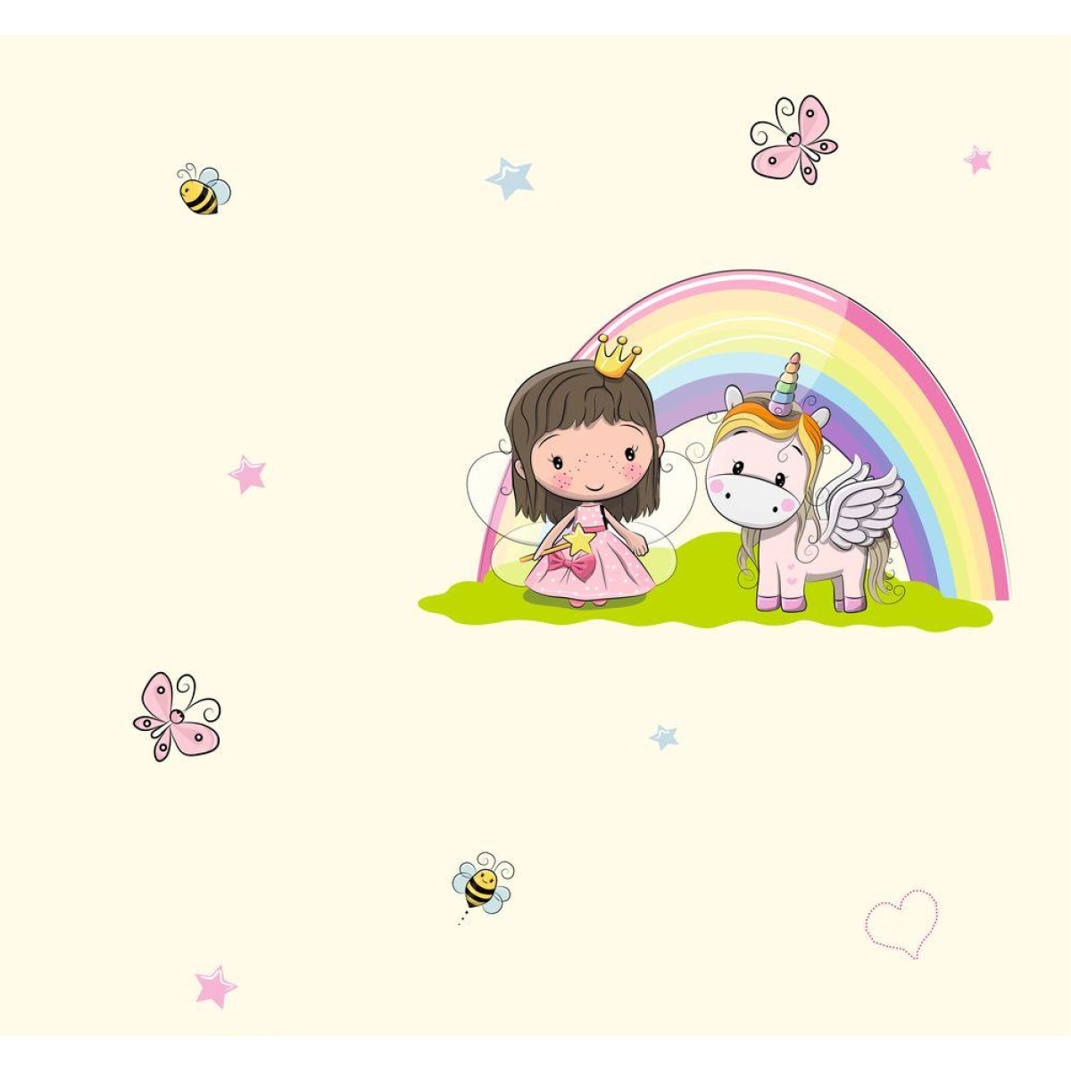 Fehér alapon unikornis tapéta, királylányos gyerektapéta