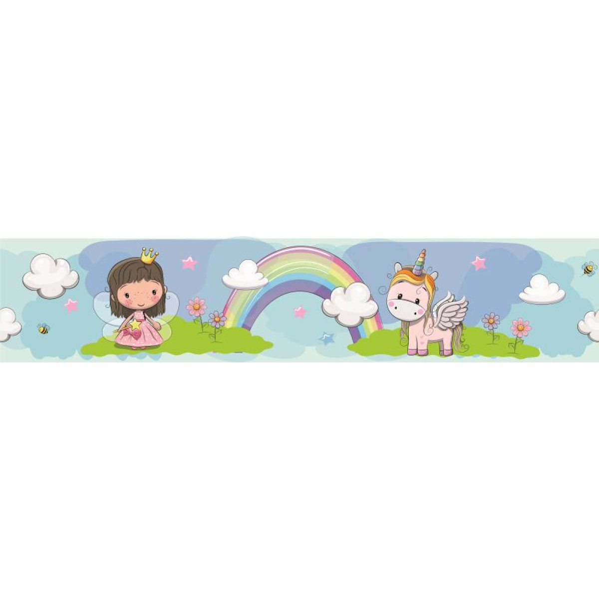 Unikornis kislány babaszoba bordűr, egyszarvú és királylány öntapadós bordűr, rózsaszín fehér pöttyös