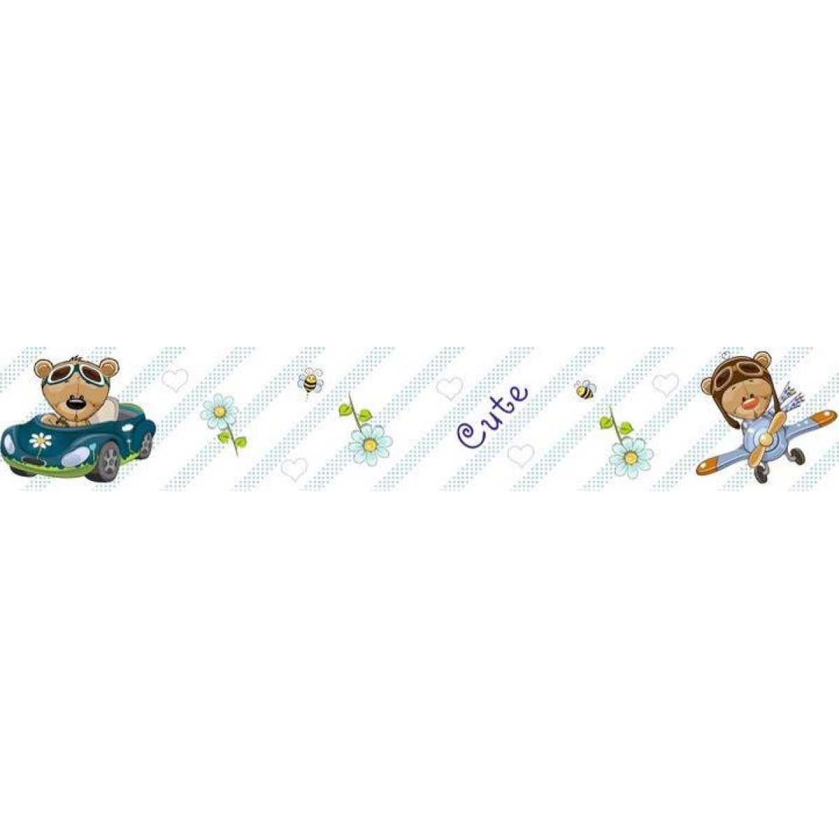 Autós fiú babaszoba bordűr, autós macis öntapadós bordűr, kék pöttyös