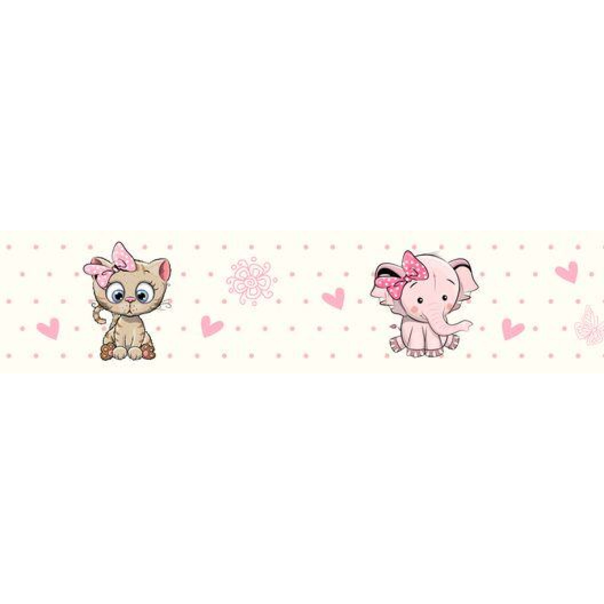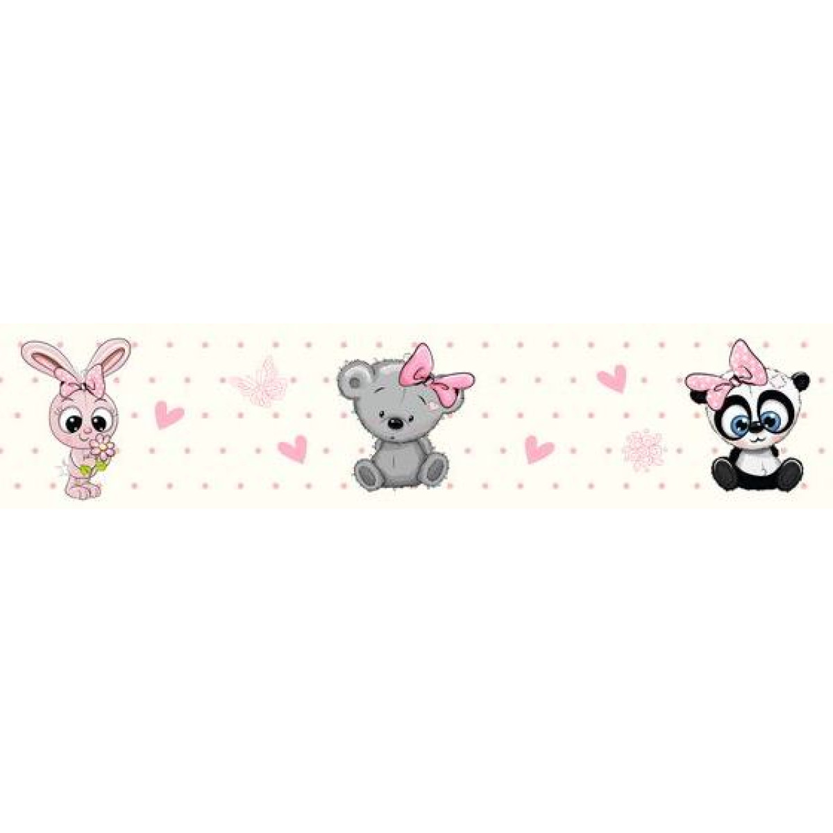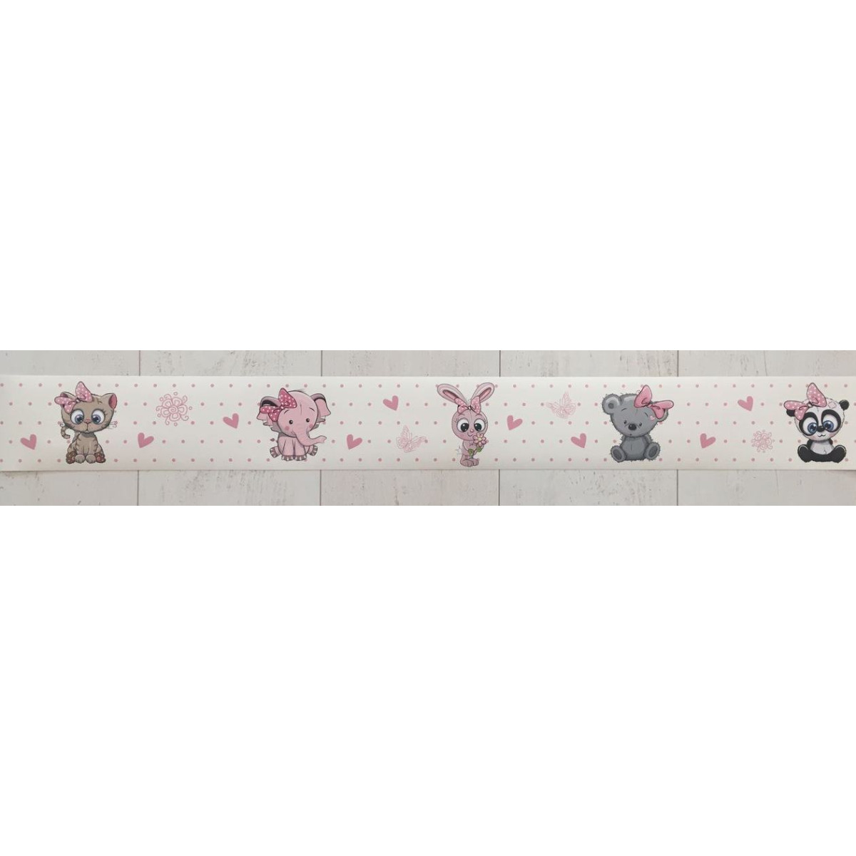 Állatok kislány babaszoba bordűr, cica, elefánt, panda, nyuszi, koala öntapadós bordűr, pöttyös Mérete: 5 méter x 10 cm