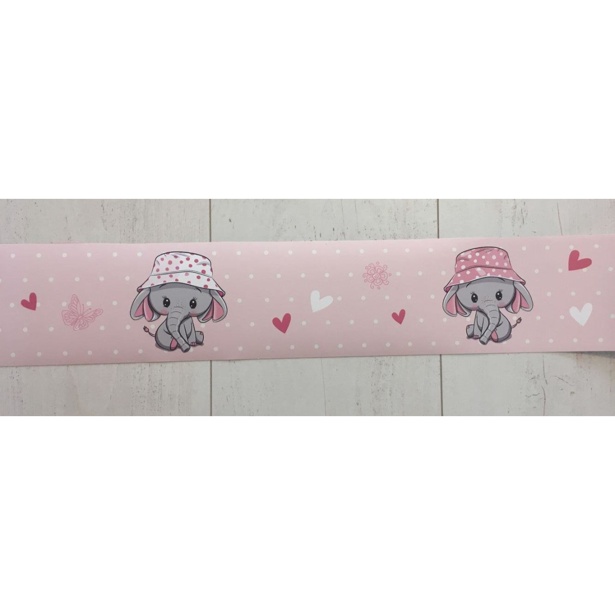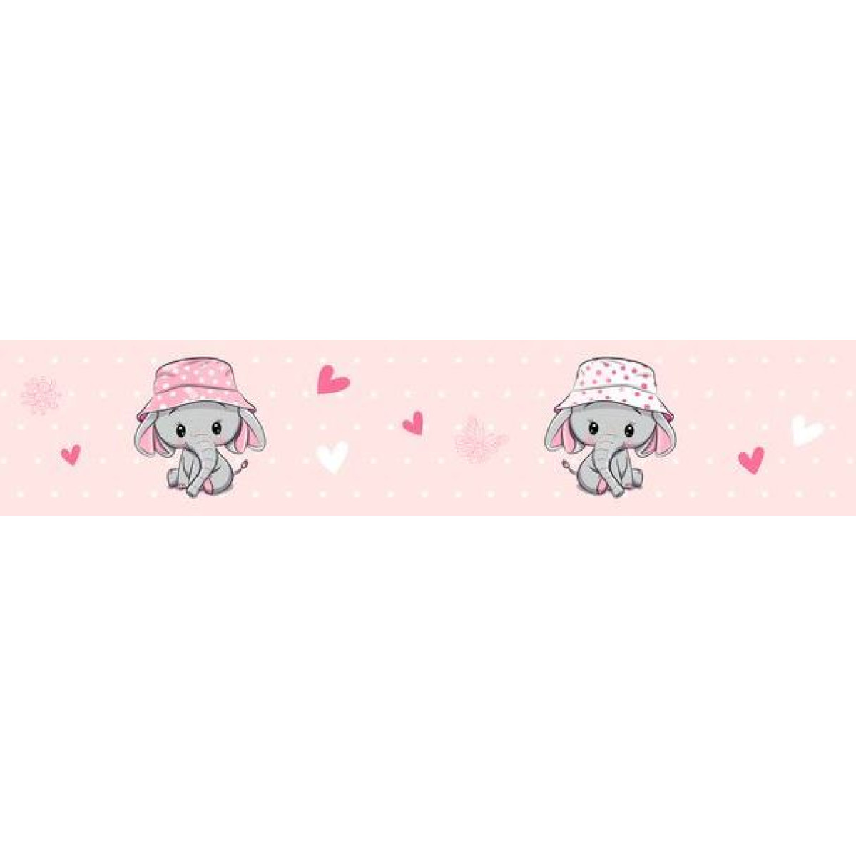 Szíves, pöttyös, elefánt sapkában kislány babaszoba öntapadós bordűr