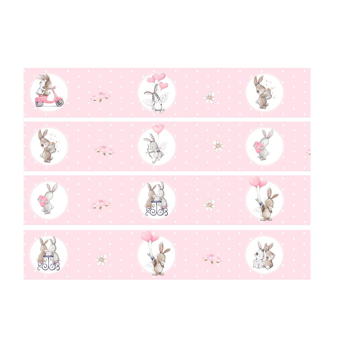 Nyuszis rózsaszín, pöttyös öntapadós bordűr babaszobába